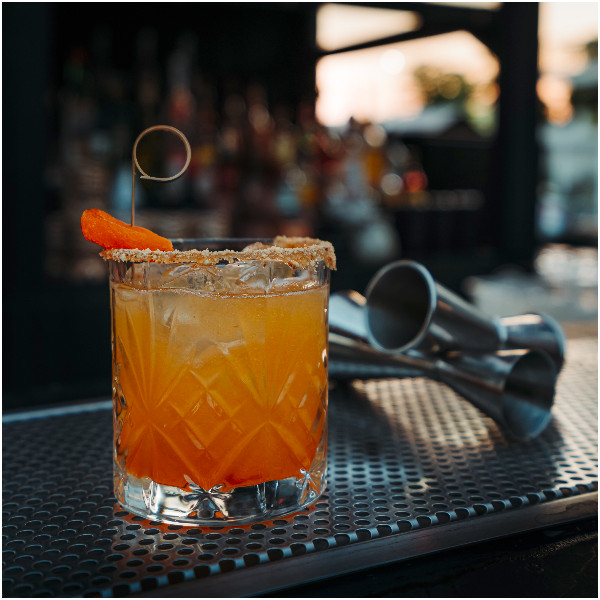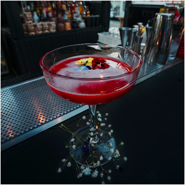 Secret blended rum, passion pure, pineapple pure, homemade spicy and flowers syrup, lime, angostura bitters