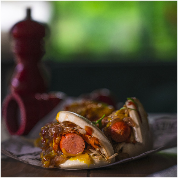 Με λουκάνικο Φρανκφούρτης, λάχανο, καρότο, καραμελωμένο κρεμμύδι & σάλτσα μουστάρδα – μέλι (3 τεχάχια)